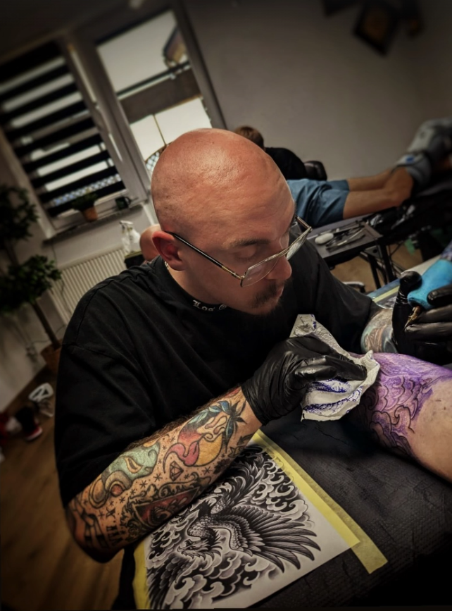 Dominik – właściciel studia – to artysta z wieloletnim doświadczeniem, który tworzy tatuaże unikatowe i pełne charakteru.